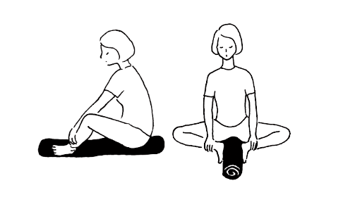 - 2. 丸めたタオルの片端に座る